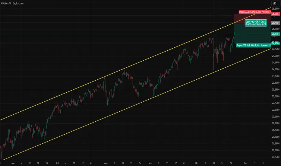 Nasdaq still trending up, enjoying the today's lower than expected CPI data. If it ride towards the upper line of the channel, it likely to get rejected. I don't see any reason for an upside breakout at the moment. Setup is for today and Monday, I will deactivate my order after Monday.