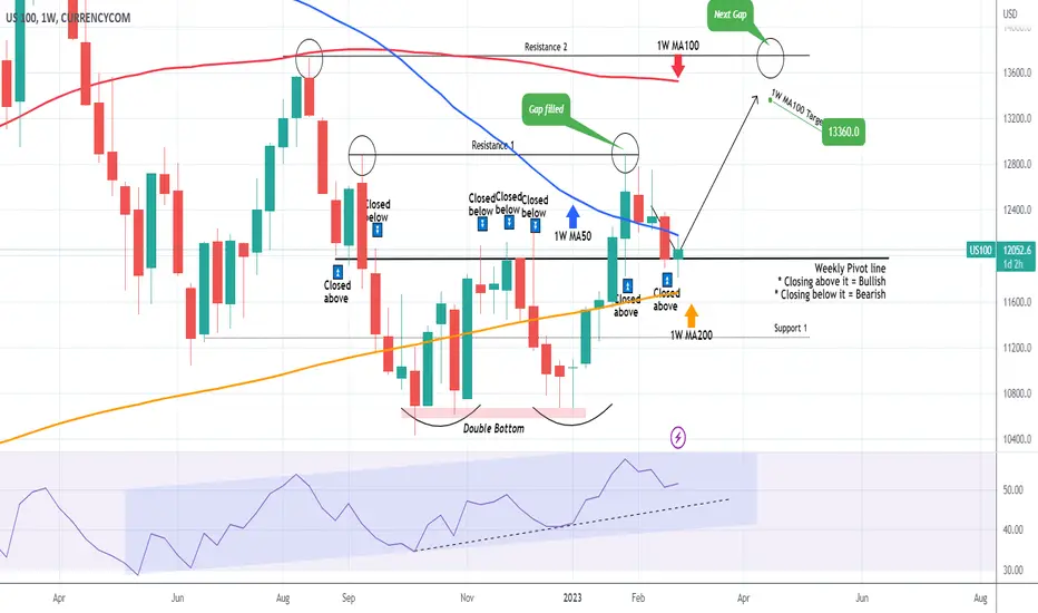It is important now to show you why this level is important for the long-term, this time on the 1W time-frame. As you see on the current chart, despite last week's sell-off, Nasdaq closed its 1W candle exactly on the Weekly Pivot line. This is the line that separates the bullish from the bearish trend. As long as the price closes above it, the trend is bullish and vice versa if it closes below it, the trend is bearish. It is therefore critical to see where the 1W candle will close tomorrow.