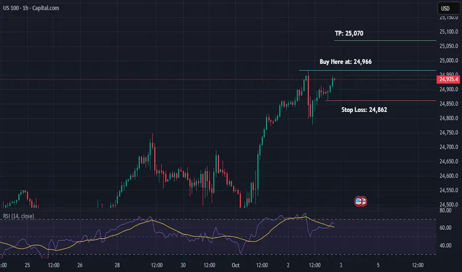 US100 is showing strong Bullish Trend on Daily Timeframe. The 4H and 1H timeframes are also showing Bullish momentum.