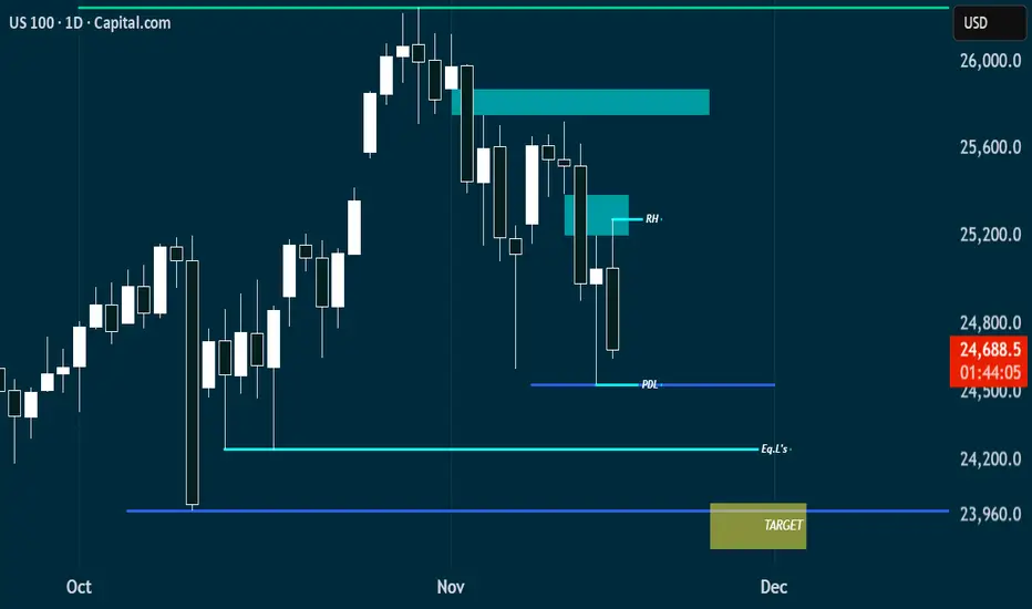 For US 100 - Target/draw on liquidity is the Weekly STL overall.