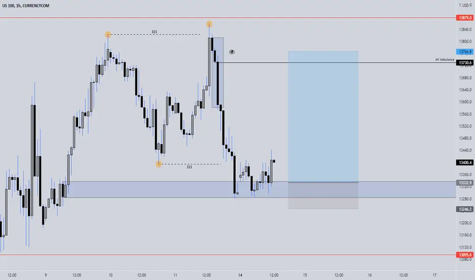 📉 Expecting bullish price action on NASDAQ as price takes out old lows liquidity and right now is rejecting a bullish orderblock area + POC(point of control) on the VolumeProfile Indicator. We have a lot of bearish imbalances that has to be filled asap somewhere around 13730.