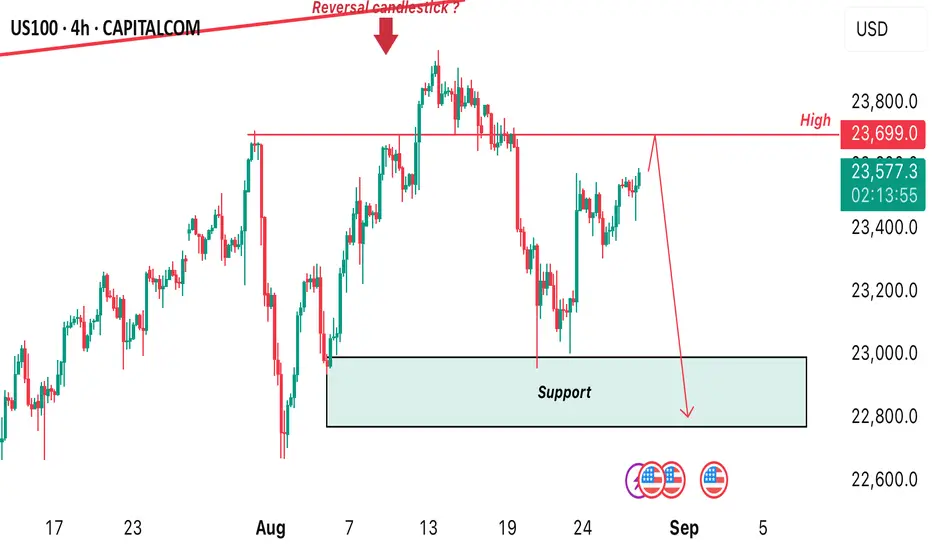 I expect a potential decline in price of upto 3.5% from the price some of 23699.0. Technically, I can notice how price is gradually shifting in structure from intraday bullish to bearish! I expect price to decline significantly from that price zone. A sell opportunity is envisaged around that level of 23699.0