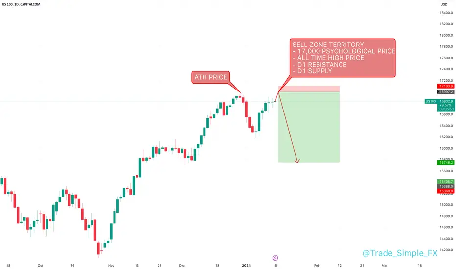 Another stock index markup here, for those that had a watch of the weekly watchlist video, you would have seen the detailed analysis on this, but we are simply waiting patience for a test of this 17k price, a huge psychological price with ATH’s, D1 resistance and supply.
