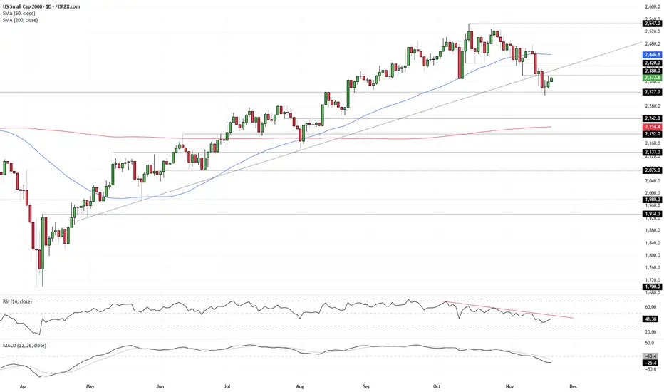 Looking at the daily chart, we see a clear morning star bullish reversal pattern printed this week, with follow-through buying after the Nvidia results. However, as was the case in the prior session, the price has been unable to take out 2380 so far, marking the low struck on November 7. It’s only a minor level, but it has seen price action on either side of it this month, making it relevant when assessing setups.
