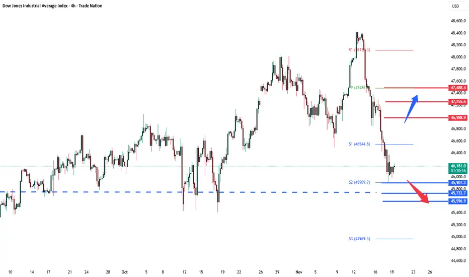 DowJones support retest at 45907