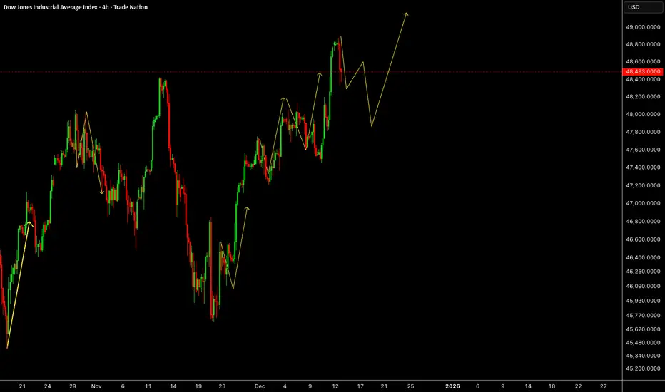 US30 continues to trade within a broader constructive structure, with recent price action showing a clear pause after an aggressive upside sequence. Momentum has cooled without a full reversal, suggesting the market may be recalibrating rather than distributing before the next impulse.