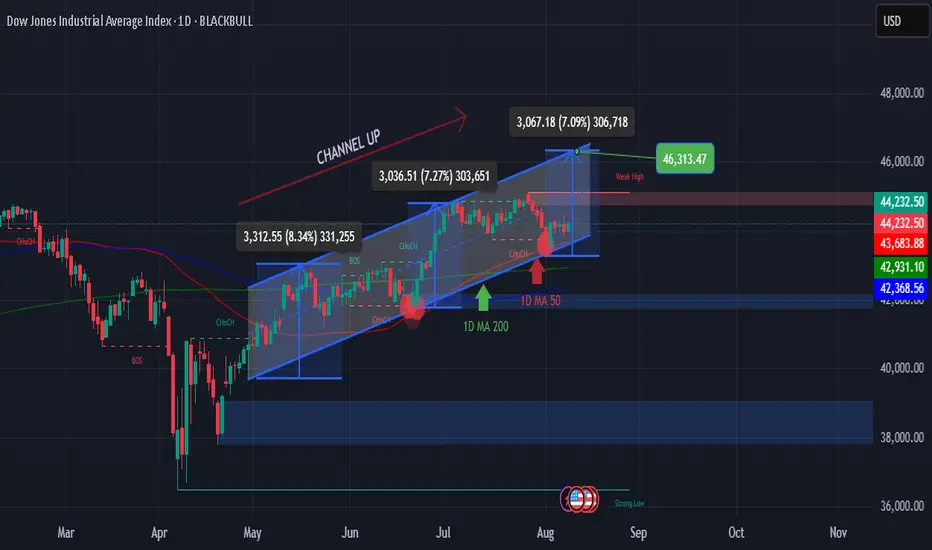 The Dow Jones (DJI) has been moving inside a Channel Up since the April 25 low. Right now, price is consolidating after touching and bouncing from the 1D MA50 (blue line), which also aligns with the bottom of the Channel.