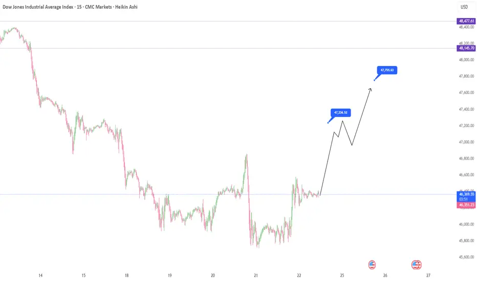 After ranging in Asian session, expect bullish movement to 46,800 levels starting with London session.