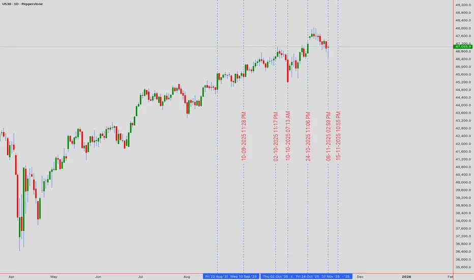 Tuesday-Wednesday (11-12th): 📈 Prime breakout window opens—47,300 represents key decision point. Expect 250-400 point daily volatility swings. Breakout confirmation targets 47,450-47,550 extension. This is the optimal swing trade window all week.