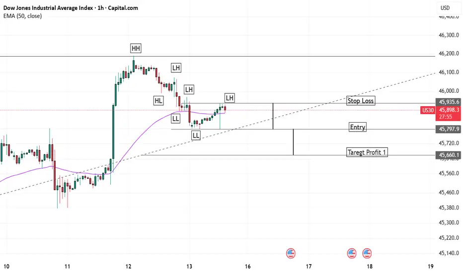 US 30 1 Hour Downward Trend Simple Dow Theory
