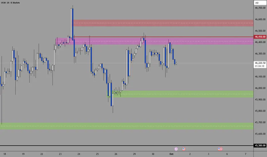 Short from 46,320-46,380 rejection targeting 45,920-45,980 then 45,640-45,700