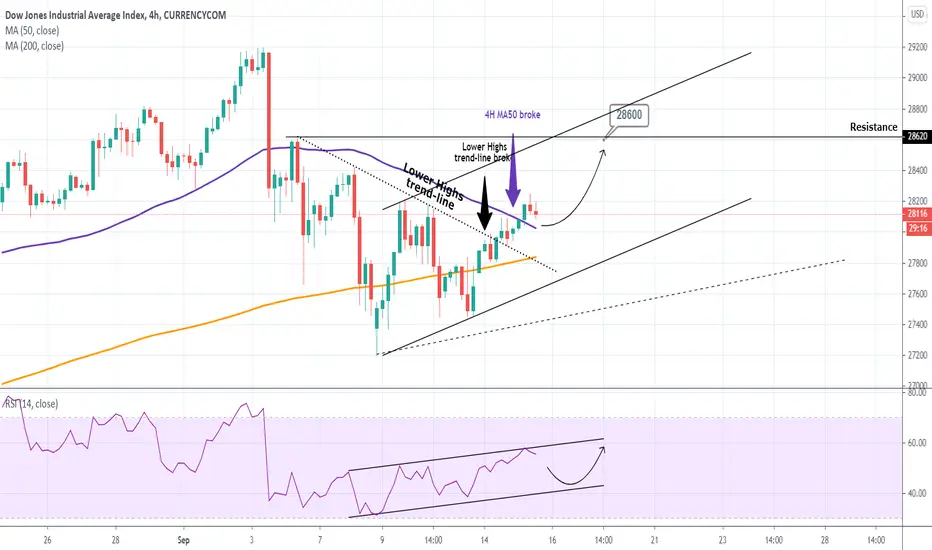 Signal: Buy as the price broke above the Lower Highs trend-line and the 4H MA50.
