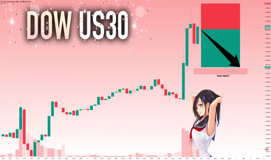 The recent price action suggests a shift in mid-term momentum. A break below the current local range around 46,903.31 will confirm the new direction downwards with the target being the next key level of 46,721.37 and a reconvened placement of a stop-loss beyond the range.