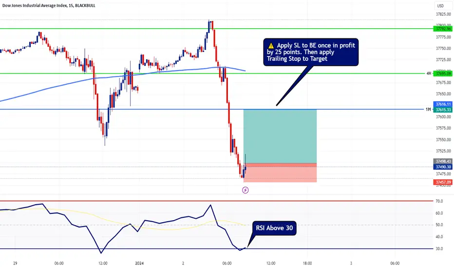 Important note when taking my trading recommendations is to always move SL to breakeven once in profit by 25 points with the US30 and then apply a trailing SL to the target.