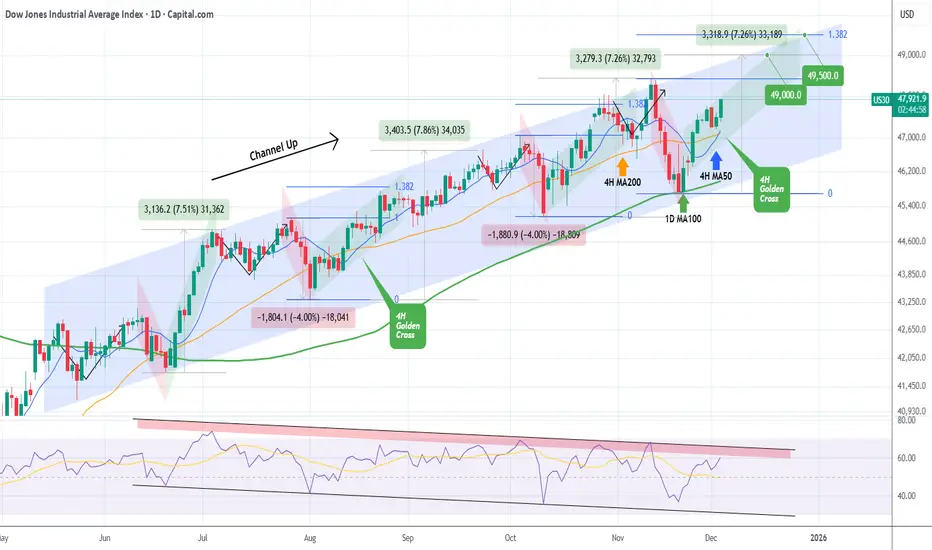 DOW JONES formed its first 4H Golden Cross since August. Bullish