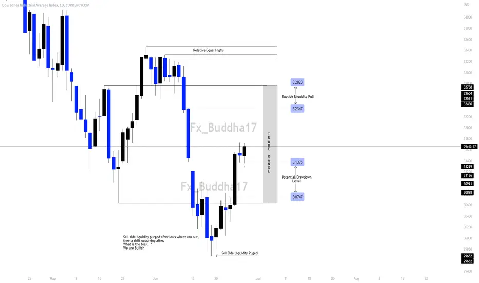 Long On U30 After Sell side Liquidity ran therefore creating a shift of the Market on the Bullish side leaving a potential area of drawdown for manipulation before a volatile move to the upside if it happens to pullback