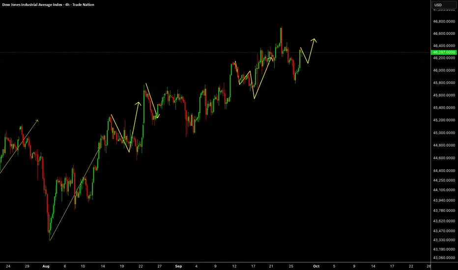 US30 needs some correction and one more push up to take ATH.