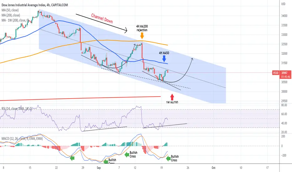 With the 4H MACD on a Bullish Cross, we are expecting Dow to reach 31700 and make a new Lower High within the Channel Down within a 1 week horizon.