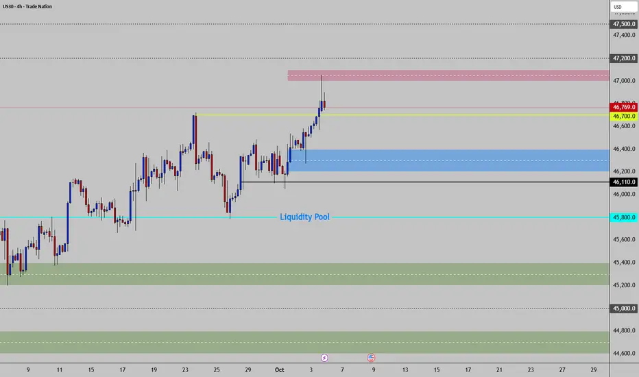 🎲 Direction: Long from current levels targeting 47,000-47,100