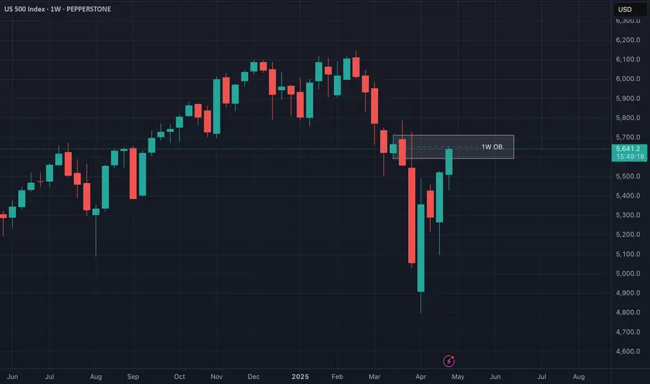 Taking a close look at the US500 on the weekly timeframe, we can see price has now traded directly into a bearish weekly order block 🧱 — a key distribution zone where smart money activity often emerges. At this level, the market is trading at a premium 💰 and appears to be overextended 📈.