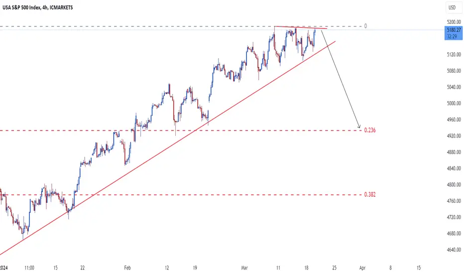 Despite the FED intensifying its hawkish rhetoric at every meeting since December, the dovish market pricing in the SP500 continues. If the FED escalates its hawkish stance at tomorrow's FOMC meeting, we may see corrective declines in US stock markets, including the SP500, which are currently in a dovish pricing rally. The US inflation data coming in throughout the year shows a sticky outlook, not aligning with the dovish stance priced in by the market. The FED could intensify its rhetoric to cool down the market further. Especially if the dot weights in the Dot Plot concentrate after June for the first rate cut, the market could experience a significant correction.