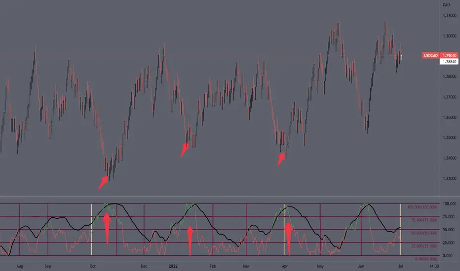 This was an interesting find using the EMA on Implied vol indicator. Looking at the technicals below the bar chart price has rallied 3 out of 3 times when this has happened during oct 2021 and April 2022. Along with the rallies have come the sell offs unlike the rallies the black EMA and the vix fix line track each other as the market sells off causing the red line to turn green and signal the next market rallies. I have still have to do back testing with it being this accurate it my be repainting.