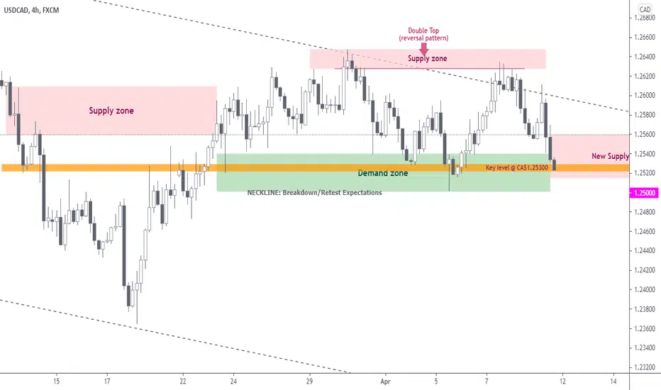 The price moved over 160pips in our direction since my last publication before meeting selling pressure @ CA$1.265000 followed by rejection at this same area during last week trading session to make a complete Reversal pattern (Double Top) at exactly the peak of the Channel Trendline (see link below for reference purposes). This feat completely emphasizes that price action is about respecting the Descending Channel (See chart below) one more time as I look forward to a breakdown/Retest of Neckline which is also my Key level @ CA$1.25300 for confirmation in the coming week(s)!