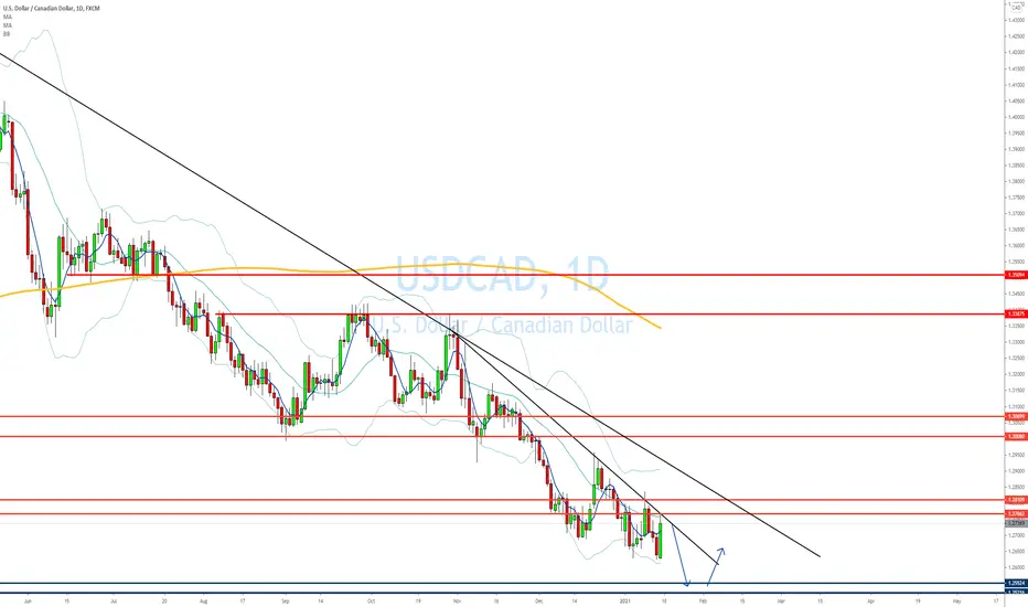 USDCAD has been on a steep descend recently breaking a long-term demand zone. However, price can be observed to be slowing down, while approaching the next demand zone. Should price be supported at this level, we could expect a larger pullback. Price is currently still being resisted by falling trendline, thus we could still sell USDCAD to the next demand zone.