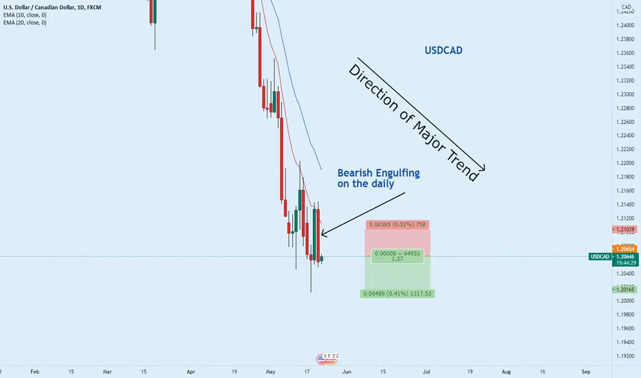 USDCAD has formed a bearish engulfer on the daily timeframe. Also it is almost breaking the monthly support zone.