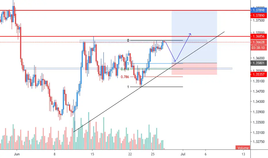 USDCAD currently finds itself retesting the previous level of resistance and holding on pretty well so far. Assuming this level holds, we will be looking for a pullback to retest the current ascending trendline in correspondence to our 0.5 fib retracement area, and potentially bounce off into further bullish momentum.