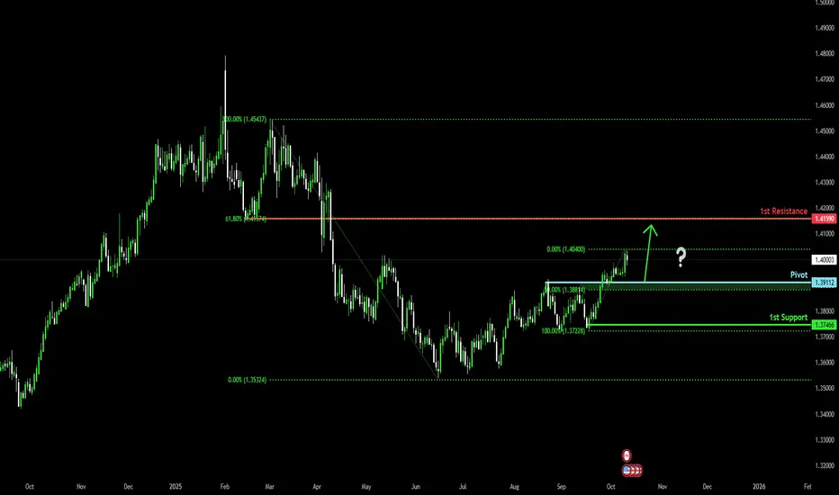 The Loonie (USD/CAD) is falling towards the pivot which acts as a pullback support and could bounce to the pullback resistance that aligns with the 61.8% Fibonacci retracement.