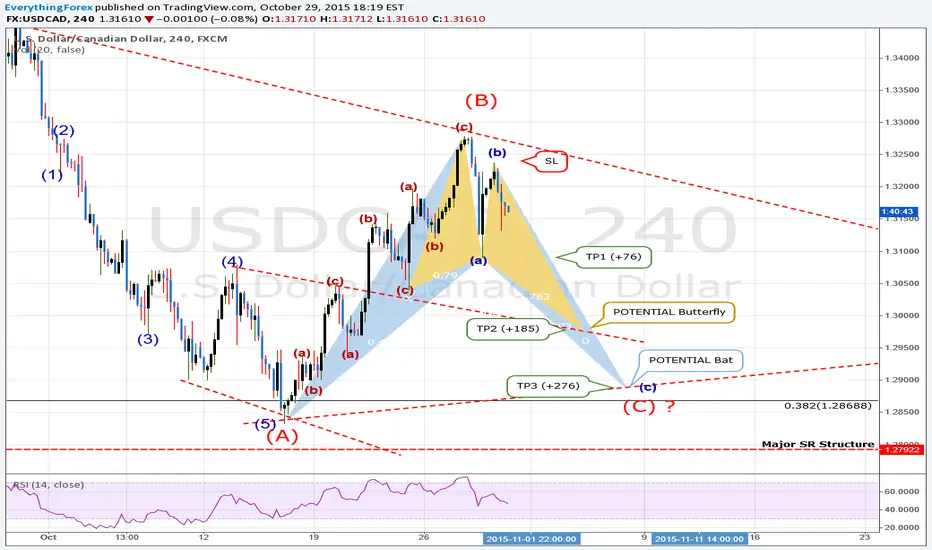 I am SHORTING this pair now for a trip down a possible wave (c). I'll place my stops above the end of wave (b) of this wave (C) so that if prices were to reach back up past that point, then there's a chance that we may see higher prices ahead. My TP's are shown on the chart.