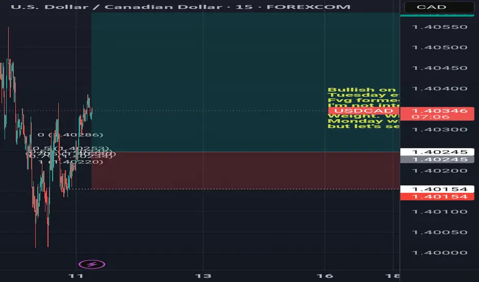 Long usdcad. I was expecting a reversal yesterday with a FVG but it appeared on the last candle of the day. That said, we'll be using the low of that candle as stop low and not the actual weekly lowest price so far. If candle moves below that candle, lower lows will be made