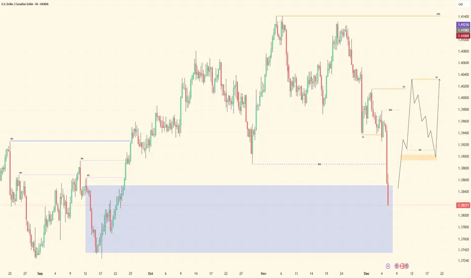 USDCAD is bullish. HTF structure is clean — price has broken major and significant highs to the left, maintaining a clear bullish trajectory.