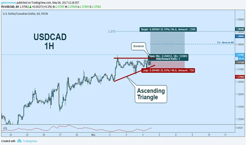 Hey traders, USDCAD flipped the scrip on us and is continuing its bullish momentum. I like the R/R and the support under entry. B/E at 1:1 with a target at the 1.272 extension at a R/R of 2:1. Cheers