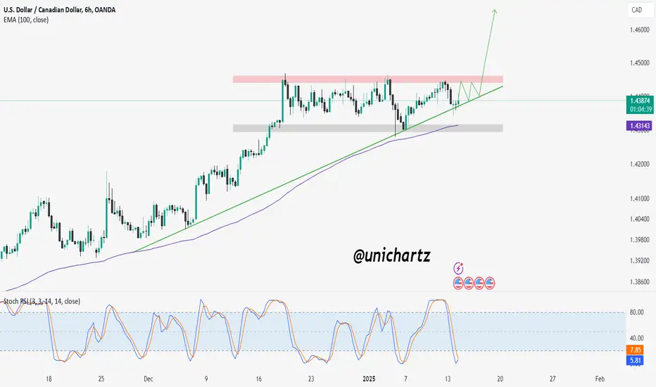 AUD/CAD is currently trading within a symmetrical triangle pattern, moving sideways between the green support zone and the red resistance zone.