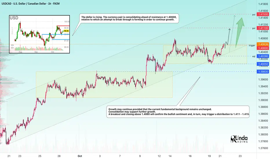 The dollar is rising. The currency pair is consolidating ahead of resistance at 1.40600, against which it is attempting to break through in order to continue growing.