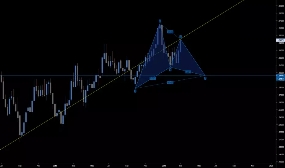 We are predicting the formation and completion of the Gartely pattern as seen on the weekly chart . We are short here at the start of the 4th leg of the formation which is also at a major resistance zone. Our intermediate to longer term take profits are on the blue zones.
