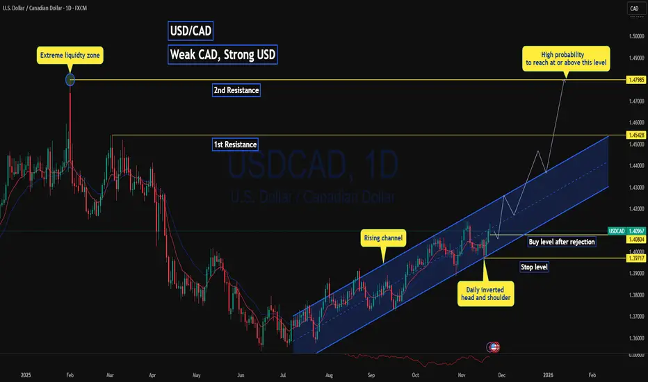 USD/CAD has formed a bullish channel with recent formation of inverted head and shoulder on the support level of the rising channel.