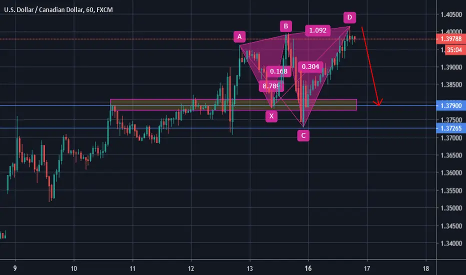 usdcad seems like going down. let me clear im not 100 percent in this pattern.please so your analysis before getting in