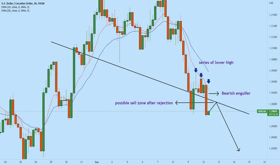 USDCAD (4h) has formed a strong reversal pattern and the price has broken to the downside with a bearish engulfer. Currently, the price is below weekly support. in the new trading week, the price opened with a gap up with rejection to the downside. On the test of the neckline of the reversal pattern, the price may continue to drop. A sale is a high probability of set up after rejection.