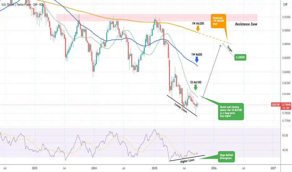 However, for the first time in years, its 1W RSI is on Higher Lows against the price's Lower Lows since April, which is a massive Bullish Divergence. This is an occurrence that technically emerges on market bottoms and is a huge Buy Signal.