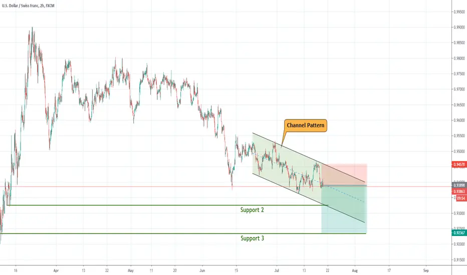 USDCHF is trading in a long term downtrend. Now it is trading in descending channel pattern. According to chart pattern analysis, we might see more downside in USDCHF from the current level to support level, as shown in the chart. Short trade can be initiated with proper risk management and stop loss.