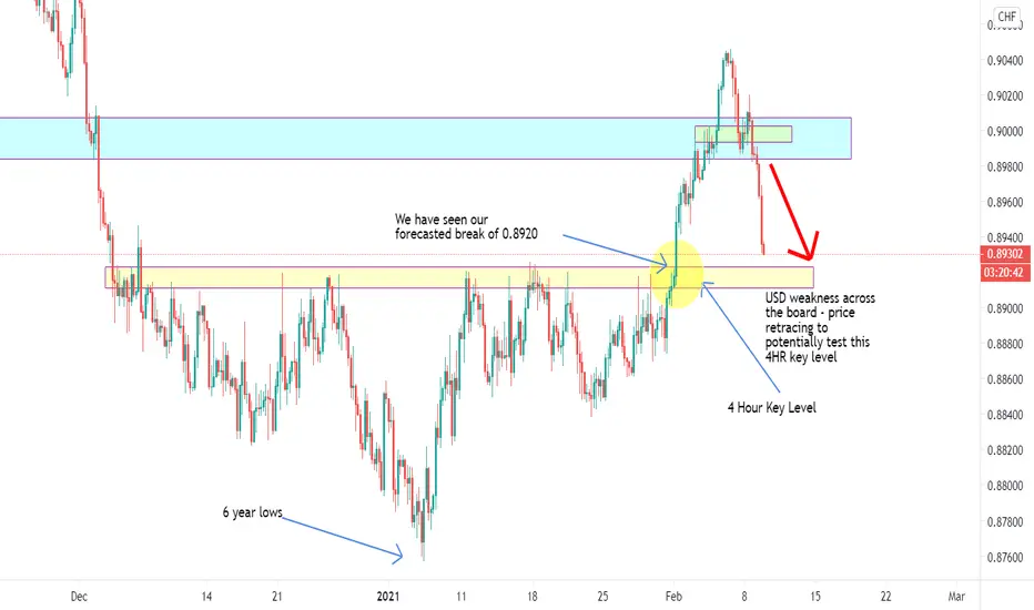 We've seen a very weak dollar through Asian and into London. We may be seeing a test of this 4HR key level we spoke so much about prior to the break. Will we find support at this level or will this bearish momentum be too strong for the buyers sitting at this level?