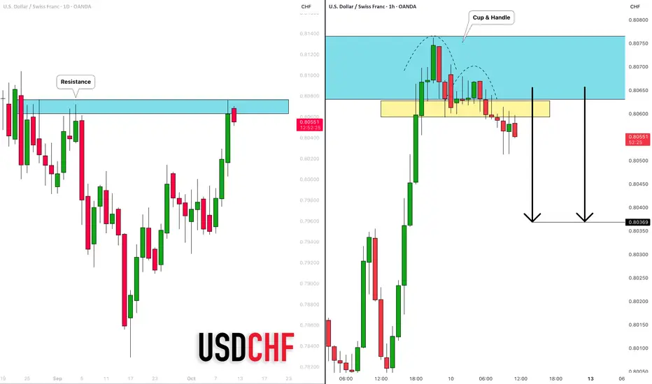 USDCHF: Overbought Market & Pullback 🇺🇸🇨🇭