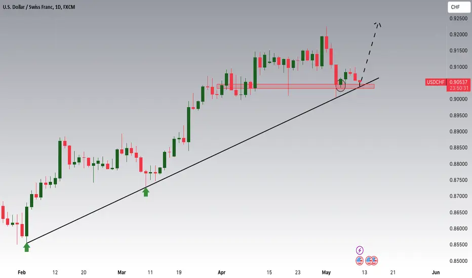 Hey Traders, in today's trading session we are monitoring USDCHF for a buying opportunity around 0.90400 zone, USDCHF is trading in an uptrend and currently is in a correction phase in which it is approaching the trend at 0.90400 support and resistance area.