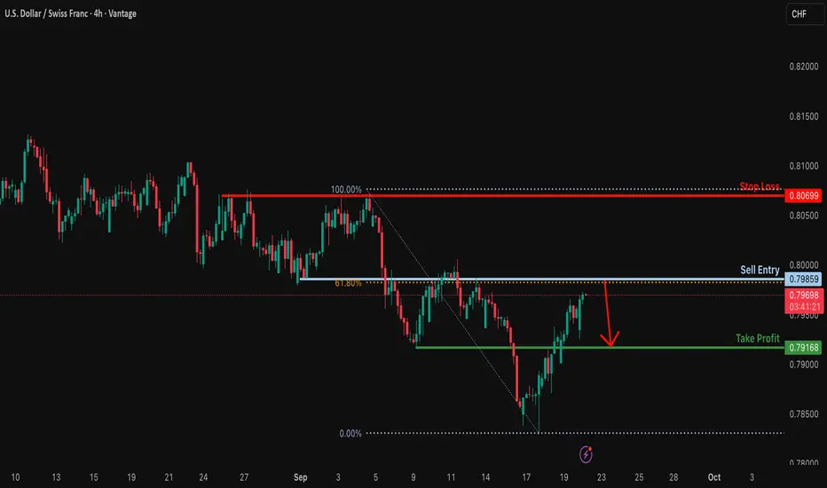 There is an overlap resistance that aligns with the 61.8% Fibonacci retracement.