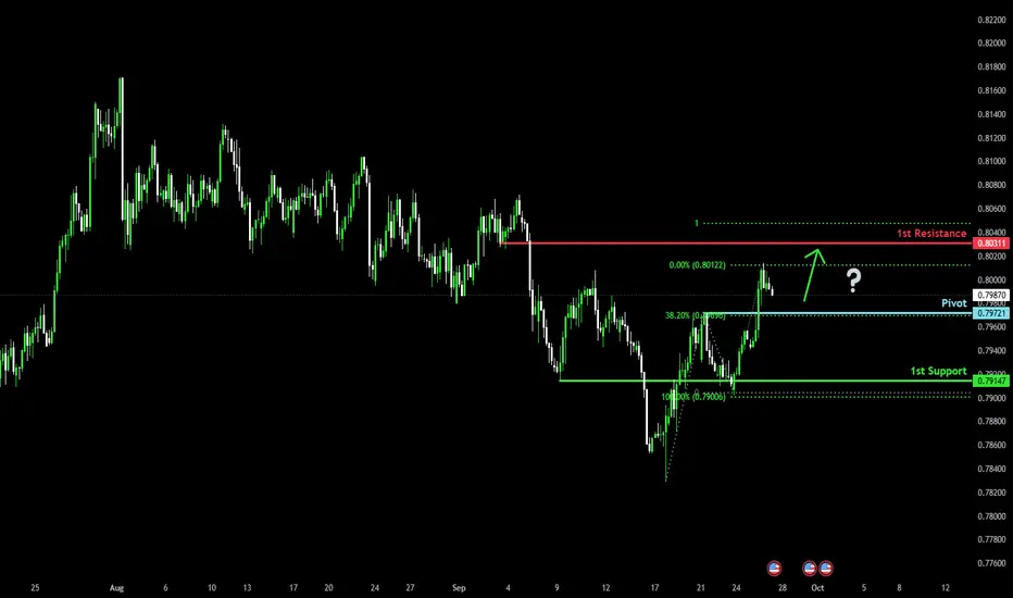 The Swissie (USD/CHF) is falling towards the pivot which acts as a pullback support and could bounce to the 1st resistance which is also a pullback resistance.
