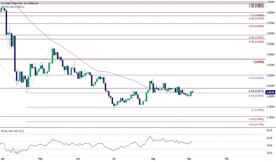 However, the recent rebound in USD/CHF may unravel if it struggles to push/close above the 0.8030 (38.2% Fibonacci extension) to 0.8080 (23.6% Fibonacci retracement) zone, and failure to hold above the August low (0.7986) brings 0.7900 (50% Fibonacci extension) on the radar.