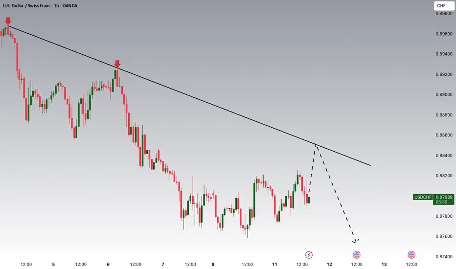 Hey Traders, in today's trading session we are monitoring USDCHF 0.88500 zone, USDCHF is trading in a downtrend and currently is in a correction phase in which it is approaching the trend at 0.88500 support and resistance area.